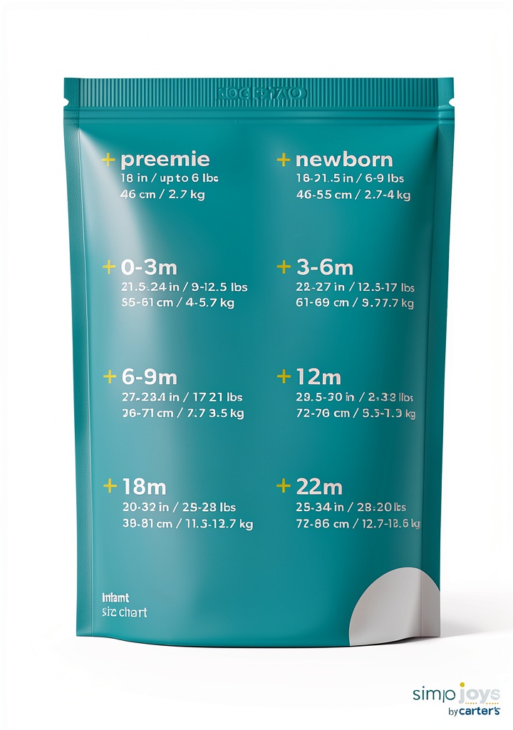 The footies come in sizes ranging from Preemie to 6-9 Months, including Newborn, 0-3 Months, 3-6 Months, and 6-9 Months, to fit various stages of infant growth.